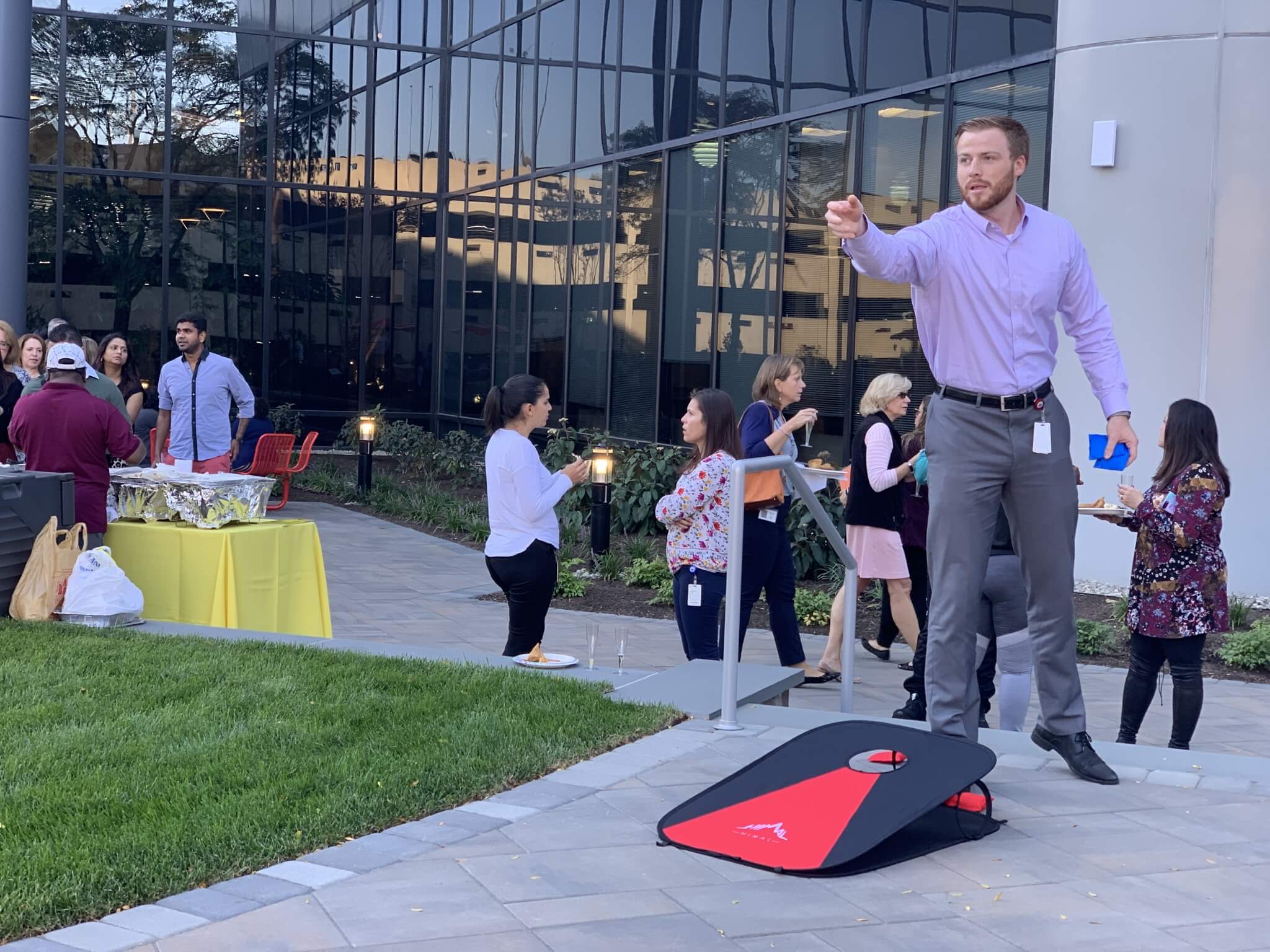 Glenpointe tenants officially celebrated the completion of The Green, a 22,000-square-foot outdoor oasis at the iconic northern New Jersey office destination on Wednesday. With mimosas and samosas in hand, hundreds of tenants celebrated the milestone project which is part of a larger capital improvement strategy taking place across the campus. Tenants savored food and drinks as they enjoyed the beautiful fall weather on The Green’s tiered patio while lawn games such as cornhole, life-size Connect Four, and ping pong provided the perfect mix of competition and fun giving tenants an opportunity to meet each other.